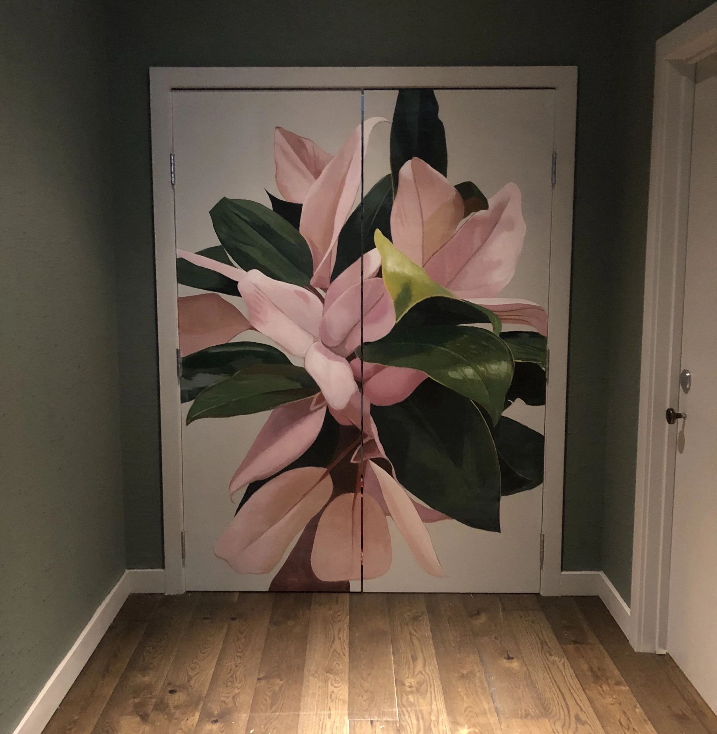 Lyla Lila Restaurant, Atlanta, GA. Private dining room, Hand-painted botanicals. Concept: Smith Hanes Studio, Design: Super Delicious Walls.